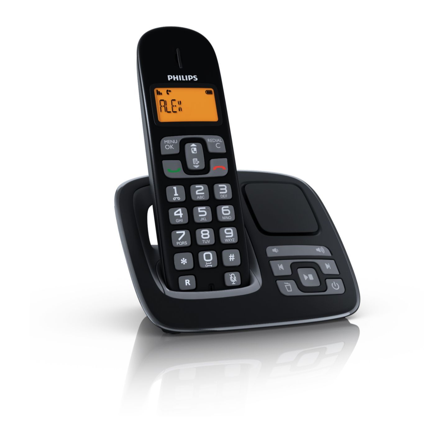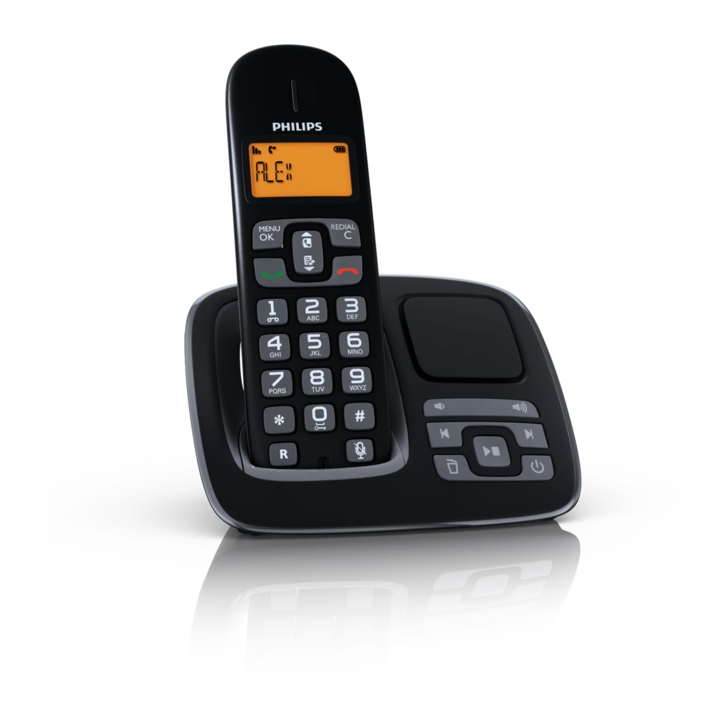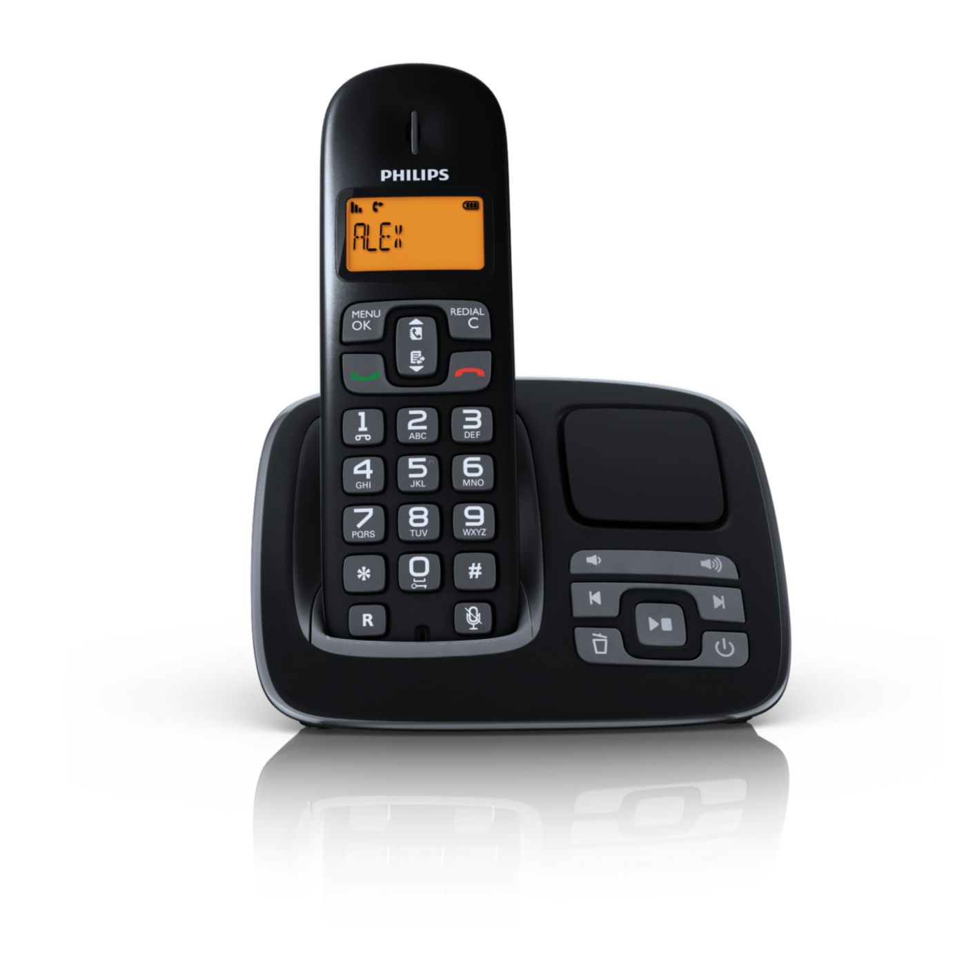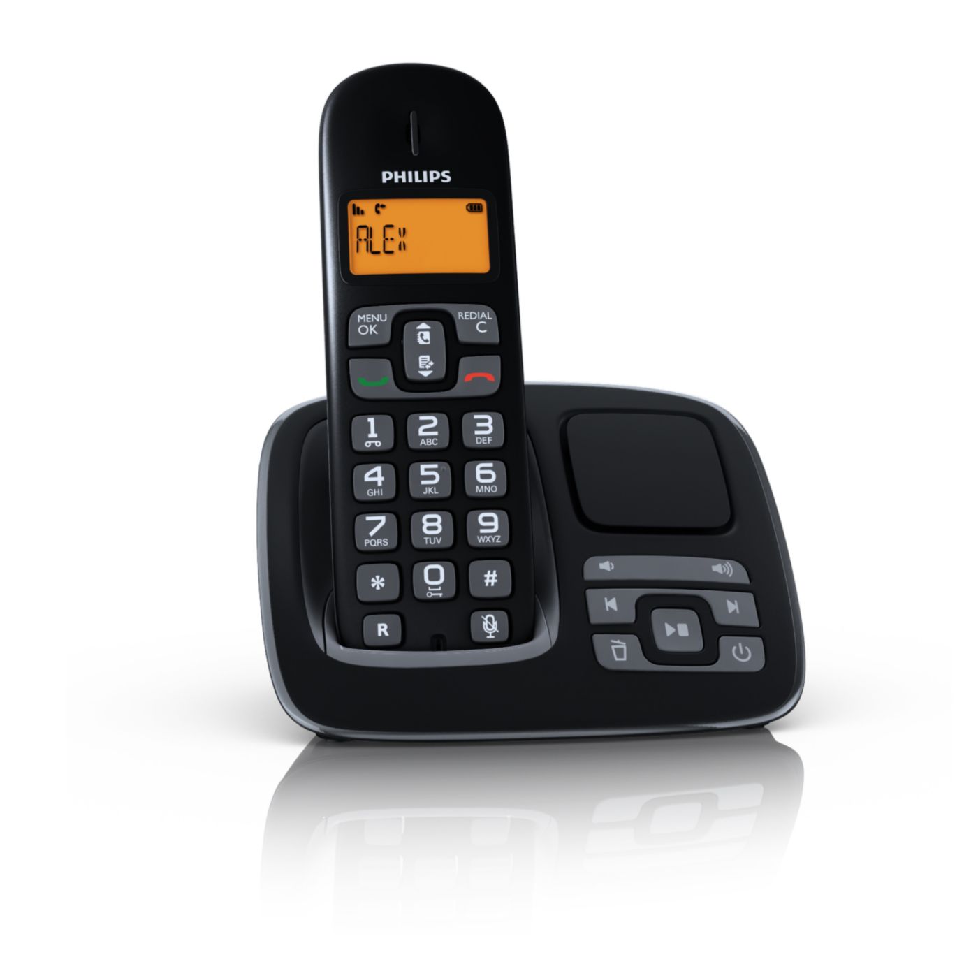 El display es claro, letras grandes y buen contraste. Tiene contestador. Y es duradera la carga de la bateria.